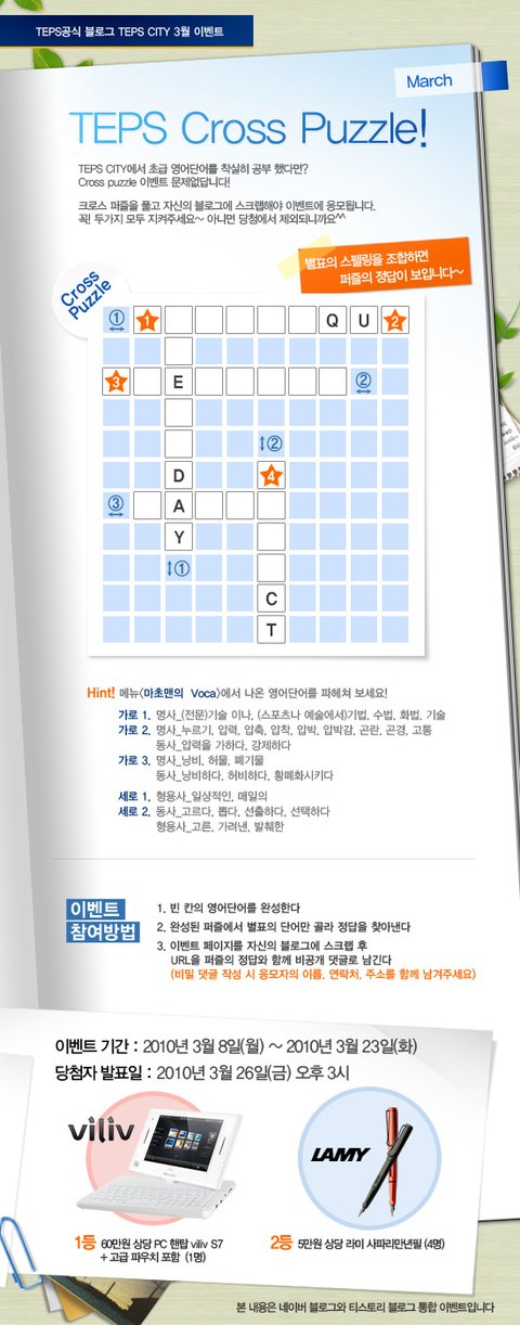퍼즐 낱말 정답은 "TEPS"래요~~