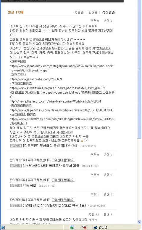 글 달아놓으면 열심히 지우시는 네이트 관계자 여러분 덕분에