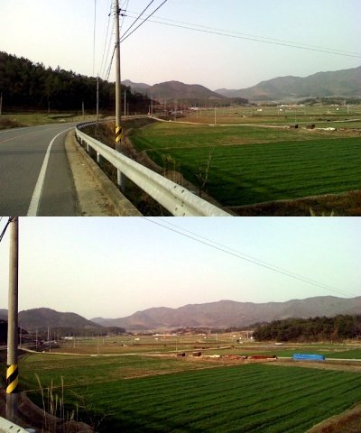 (참~ 설명드릴 게 있는데 그닥 위험한 곳이 아니에요~ 사진상으로 안보이시겠지만 왼쪽으로 집들과 마을들이 있고 중간에 경찰 지부대(?)도 있거든요~그리고 제가 출퇴근하는 시간은 다른 분들도 출퇴근 하시느라 차가 많이 지나다녀요~ 그래도 항상 조심한답니다. 걸을 땐 심심해도 엠피는 위험해서 안듣구요, 조금이라도 어둑어둑해진다 싶으면 무조건 부모님께 연락해서 차를 타고 가요. 걱정해주시는 분들이 있어서요 히힛~)
