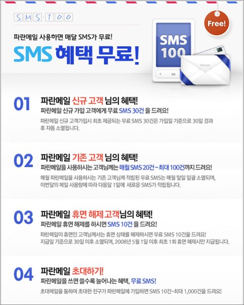 파란메일을 사용하고 있는 사람이라면 누구나 받을 수 있는 서비스 무료 SMS!