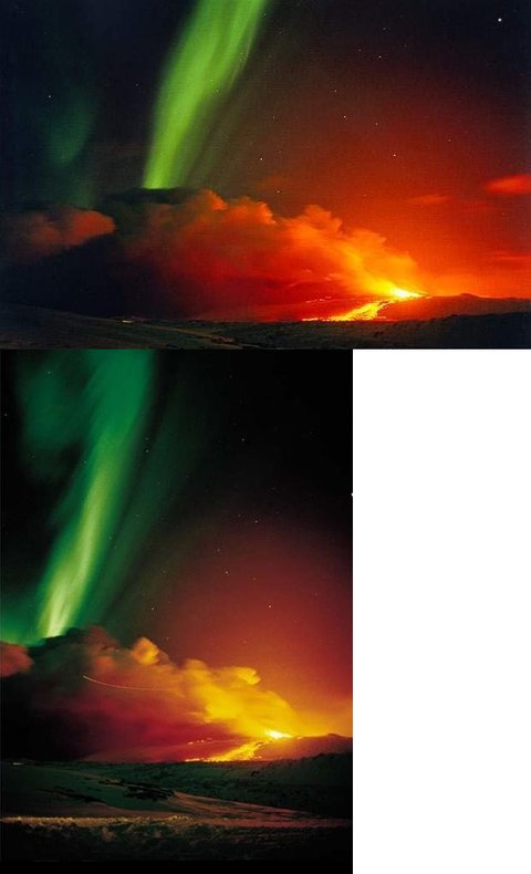 1991년 아이슬란드의 헤클라 화산이 폭발할 때 나타난 오로라 현상