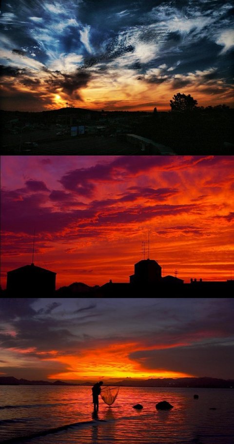 미국 플로리다 (上) 와 말레이시아 사라와크 (下) 에서 촬영된 Sun Pillar 현상입니다.이름 그대로 태양광의 기둥, 태양이 지평선 바로 아래 위치할 때 발생하는 자연현상이라고 하네요