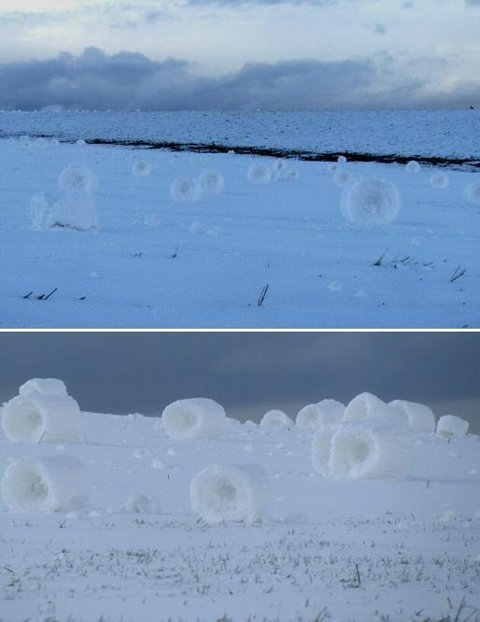 미국 아이다호 지역에서 발생한 희귀현상인 두루마리 눈(snow roller)