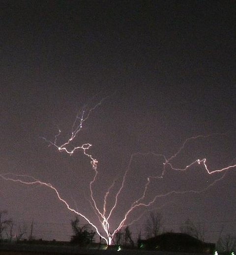미국에서 촬영된 '땅에서 하늘로 솟구치는 번개'입니다.지면이 음전하이고 구름이 양전하일 때 땅으로부터 하늘로 뻗는 번개가 발생한다고 하는데..이를 양형번개(positive lightning)라고 하네요.