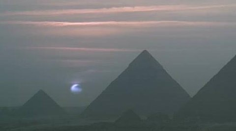 이집트 카이로에서 촬영된 피라이드 너머로 지는 푸른 태양(Blue Sun)블루선은 산불로 작은 기름방울 입자가 태양을 파랗게 보이게 하는 현상입니다.