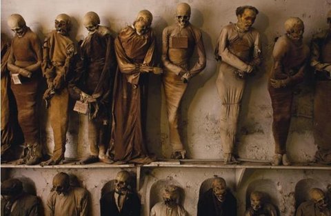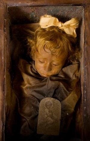 팔레모 도시에 위치한 카푸친 수도원 지하묘지의 미이라들과시간이 멈춰버린 소녀 로잘리나1920년 12월 2살의 나이에 기관지 감염으로 죽은 뒤 90년 동안생전의 모습으로 현재까지 보존되어 있다.. 뭔가 묘하네요