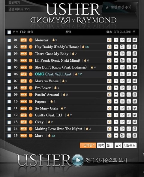 와우~!!어셔 신보가 정규앨범으로 드디어 나왔네요~
