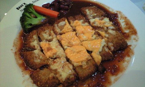 제가 먹은건 일반 돈까스 위에 치즈가루 뿌리고 그 위에 노란치즈까지 올려주는..