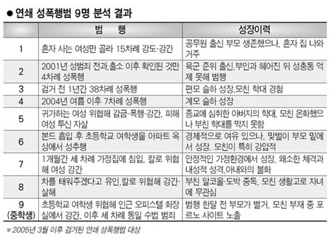 유영철,강호순,화성연쇄살인,마포발바리,원조발바리,부산발바리 등