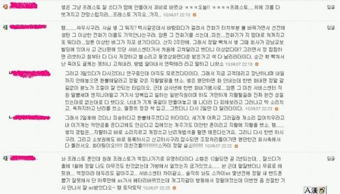 그 댓글 캡쳐해서 올립니다. 저 뿐만이 아니고 다른 분들이 얼만큼 스카이한테