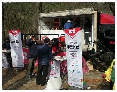 캠페인 기간 동안에 등산로 입구에 대형 정비센터를 설치해서