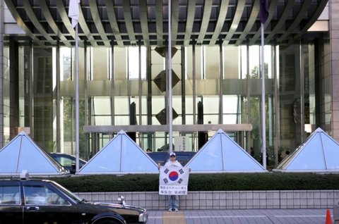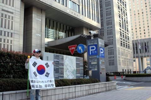 4월 8일 신주큐에 있는 도쿄 도청 제1본청 앞에서 독도는 우리땅 1인 시위했습니다.