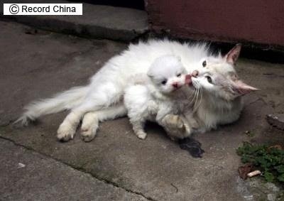 근데 이 사진에서 고양이가 안고 있는 거 강아지 아냐?!??