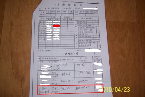 부친께서 작고하시기 전, 저는 중환자실 환자보호자 대기실에서 상시 대기하며 잠시 옷을 갈아 입고자 1. 13일 일산에 있는 저의 숙소로 돌아 왔을 때 (참고로, 아버지께서 쓰러지신 곳이 제가 당시 거주하던 숙소 - 오피스텔 - 건물 지상 주차장이었으며, 최초 신고자는 건물 경비/관리실이었음.) 목격자인 경비원과 함께 인근 백석파출소를 내방하여 문제를 제기하였으나 무시당하였고, 이에 장례를 치루고 난 1. 18일 일산경찰서를 방문하여 뇌출혈 환자를 취객으로 오인 방치하여 사망에 이르게 한 책임을 물어 일산경찰서 "청문감사실"에 감사를 신청함과 동시에 민원실을 통하여 당시 1. 9일 출동 관련 근무/신고 접수/출동 일지의 정보 공개 청구를 신청(접수일자 : 2007. 1. 18., 접수번호 : 07-06)하여 근무/순찰/사고 일지를 취득하였습니다. 당시 최초 담당 감사 경찰관의 말을 빌자면, 동 사안이 매우 중대하여 일산경찰서내에서도 상당히 큰 사건으로 인식되고 있고 따라서 모든 감사 민원 사항 중 제1순위로 처리 중임을 알려 준 바 있으며, 실제로 이후에도 동 사건은 해당 경찰서내에서도 상당히 여러 경찰들이 내용을 알고 있었습니다.(당시 최초 담당 감사관은 이후 보직 변경되어 담당 감사관이 변경되었음).