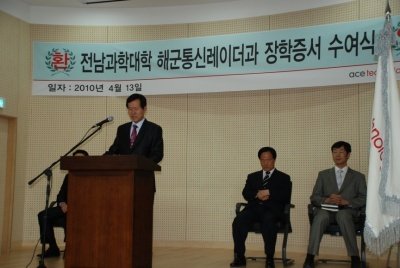 지난 2010년 4월 13일 우리 해군통신레이더과 학생들은 학과와 산학연을 맺고 있는 (주)에이스테크놀로지의 인천 신사옥을 방문해서 뜻깊은 '국방과학기술장학금' 장학증서 수여식도 갖고, 견학도 했다.