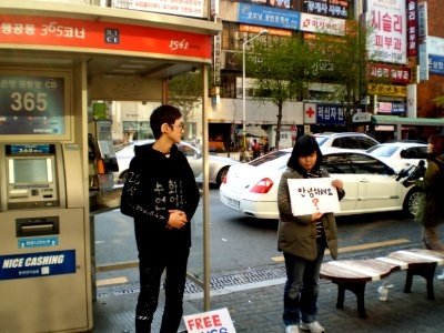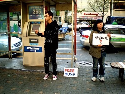 K모군이 수화로 표현하면서 프리허그를 하는 식입니다![]()