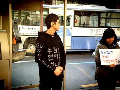 판에 마침 '4월 20일은 장애인차별철폐의 날입니다.' 라고 써있네요.