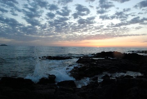 -부서지는 파도와 일몰..