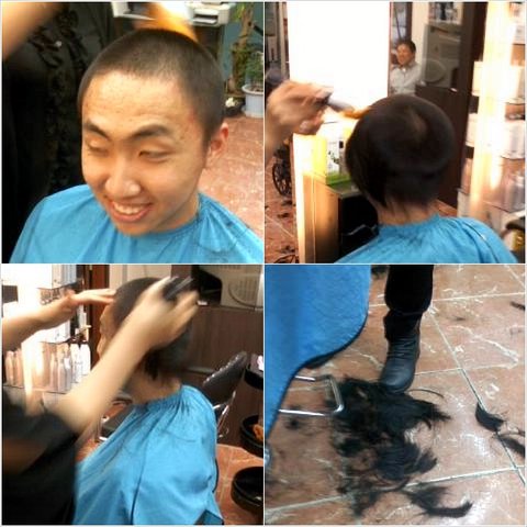 드디어 거침없이 삭발을 하기전에 ... 본인은 앞머리 일자로 한번해보고 싶다고 ....