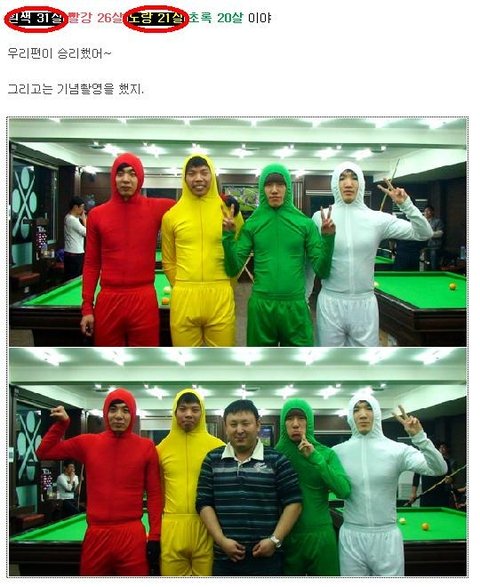 흰색 31살 빨강 26살 노랑 21살 초록 20살 이야