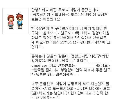 위 제목으로 톡이 된 후에, 얼마 있지 않아서, 한 여성분께서 제 방명록에 글을 남기셧더랬습니다.
