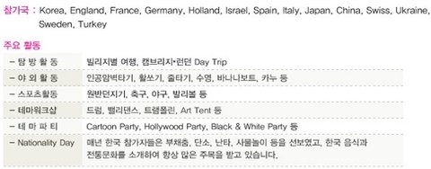 전세계에서 모인 학생들과 만나 문화를 교류하고 자연도 즐기며