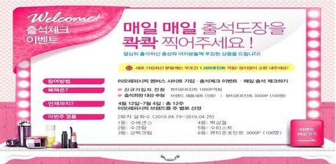 뷰티온포인트 1000p를 ,출석 회원 대상에게는 제품세트를 준다고 하네요~