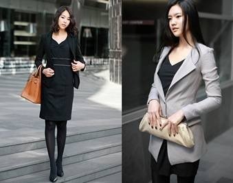 저는 상의는 블랙 하의는 회색의 원피스에 블랙 세미정장 자켓으로