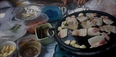 자동차 라이트 불빛에 의지하여 삼겹살과 맥주를 마시며 솟구치는 엔돌핀에