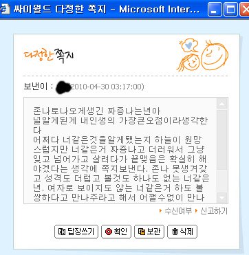 싸이월드에 들어갔는데 A군에게 쪽지가 와 있는겁니다.