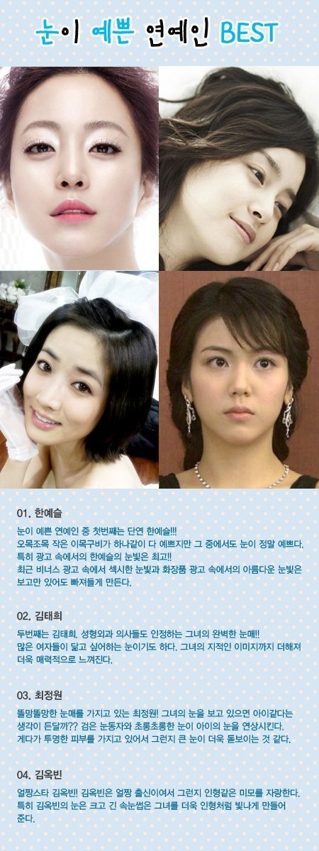 눈이 아름다운 여자연예인들 BEST 모음~~!!!!