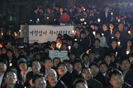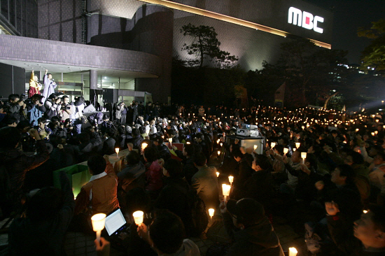 ▲ 3천여 개의 촛불이 MBC를 밝히고 있다.