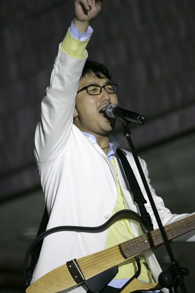 ▲ 가수 이한철이 무대에 올라 파업을 진행 중인 MBC 노조를 향해 "괜찮아, 잘 될 거야"라는 노랫말을 선물했다.