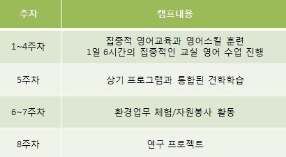영어캠프 기간은 8주간 실시하구요.