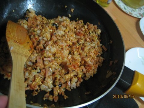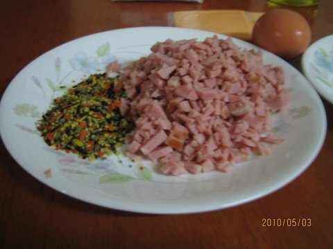 햄이랑 당근 양파 파 김치 잘게 썰었구요~