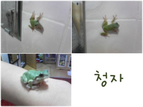 아부지가 데리고 온 개구리는 청자보다 몸이 큰 청 개구리 하나랑 갈색 개구리 한마리였거든요~ ㅋㅋㅋ