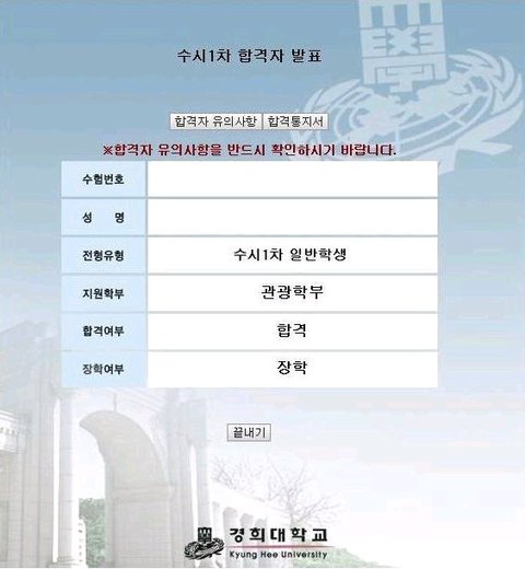 신도 제 노력을 아셨는지 경희대학교 2010학년도 수시모집에서