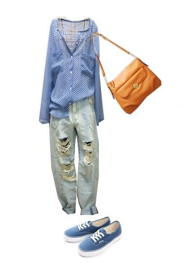 6. 편안한 배기팬츠와 도트 블라우스의 만남 !