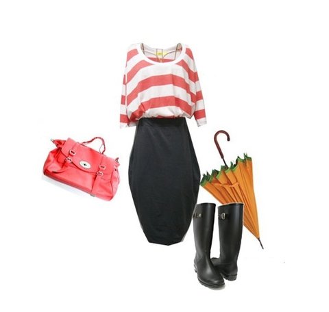 레인부츠와 함께 산뜻한 스트라이프 셔츠를 매치해봤어요 ^^