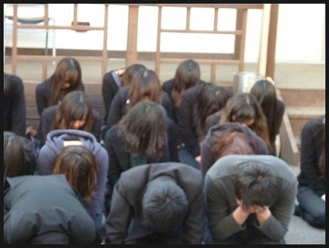 화장하러 가기전 학교앞에서 애도의 시간을 가졌습니다.