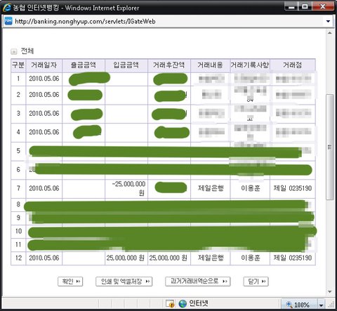 그래서 은행측에 전화를 했더니 제일은행-><- 농협 서로 확인하라고 책임전가.![]()
