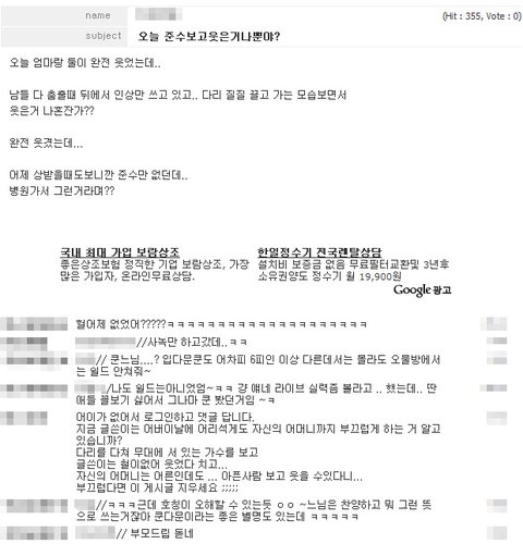 그 연예인이 싫어서 안티짓을 한다고 해도 아픈 모습을 보고 비웃고