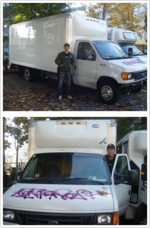 제가 몰았던 트럭입니다 ㅎ 거리의 예술가들이 낚서질 했음 ㅋㅋ