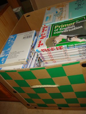 책꽂이에서 밀려난 아이들은 초라하게 박스로 갔네요..
