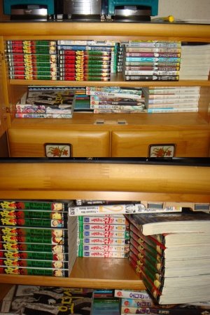 드르륵 책장(?!)에 만화책을 깔끔히 정리해놓는 거였는데..