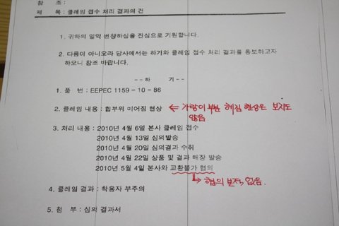 또한 위자료와 같이 문제의 양복의 처리결과 공문에서도 보는 봐와 같이 고객에 대한 미안함은 고사하고 고객을 무시하고 우롱하는 정직함 마저 없는 비양심적인 태도를 보이고 있습니다.