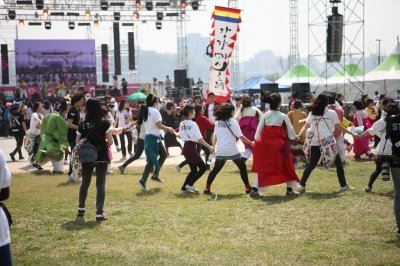 월.디.페. 현장에 도착하니 사람들 모두모여 강강수월~래가 한창!