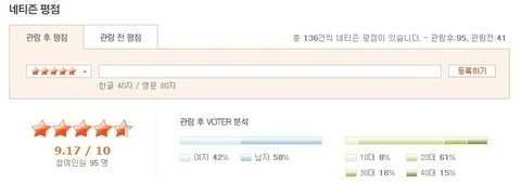 기대가 되어지는 만큼 네티즌들의 평과 전문가들의 평이 10점만점에 9점을 넘을 만큼 놀라운 평이 나타나있습니다.
