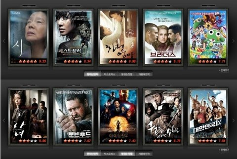 박스오피스 1위인 <아이언맨>이 7점대, 2위인 <구르믈 벗어난 달처럼>이 6점대...