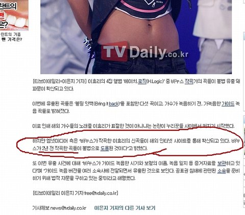 4. 그러자 이효리측에선 모두 2년전에 데모곡이 만들어졌다고 함, 바누스(이효리 새앨범 작곡가)의 데모곡을 해외여러나라 솔로가수들과 그룹가수들이 도용했다며 주장, 소송 불가피하다며 금방이라도 소송 걸듯 말했지만 실제 이효리측에선 지금까지도 소송을 걸지 않았음